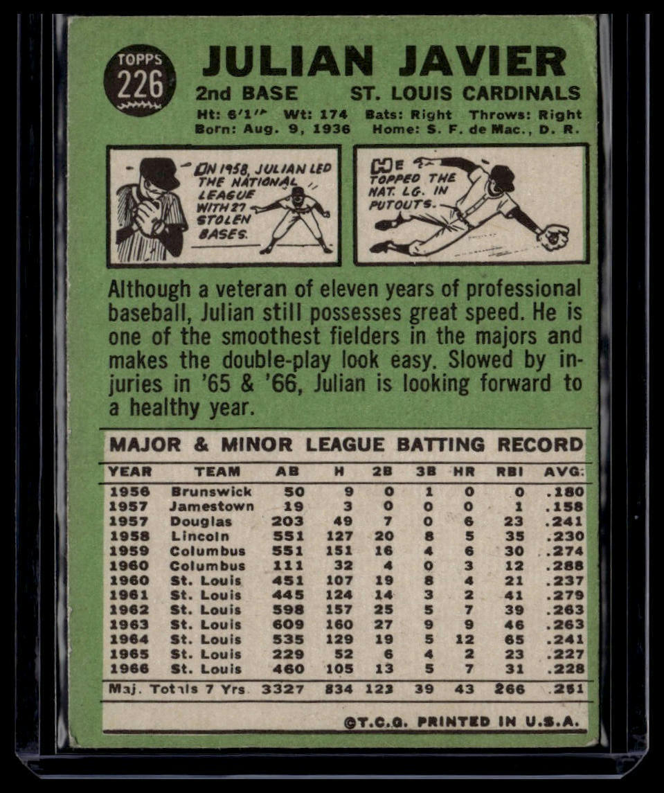 You are purchasing a 1967 Topps Julian Javier #226. You will receive the exact card in the photographs. Thank you for looking. Listed With Mascot.