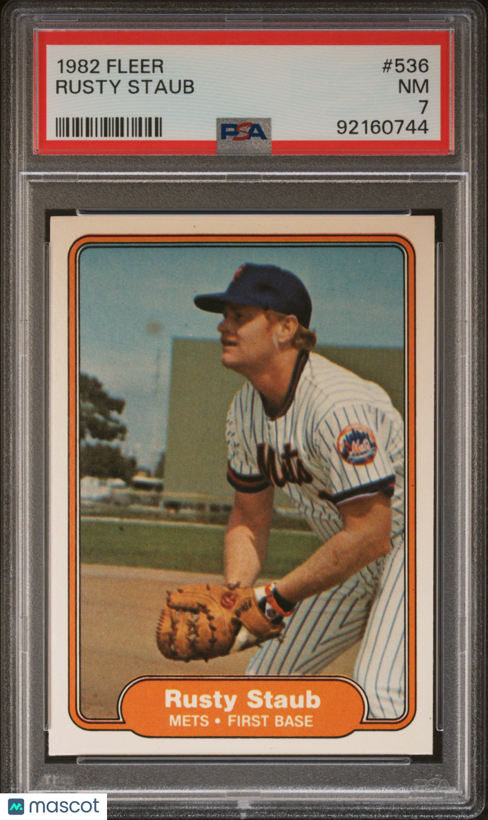 Thank you for your interest in purchasing the 1982 Fleer Rusty Staub #536 PSA 7. Please note that the exact item shown in the photographs will be the one you receive. We appreciate you considering Windy City Sports Cards to help you expand your collection. As fellow collectors ourselves, we understand the passion for sports cards. Listed With Mascot.