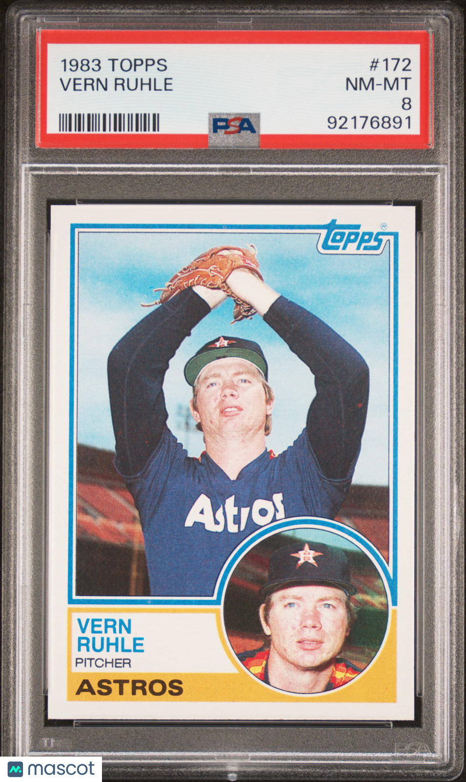 Thank you for your interest in purchasing the 1983 Topps Vern Ruhle #172 PSA 8. Please note that the exact item shown in the photographs will be the one you receive. We appreciate you considering Windy City Sports Cards to help you expand your collection. As fellow collectors ourselves, we understand the passion for sports cards. Listed With Mascot.