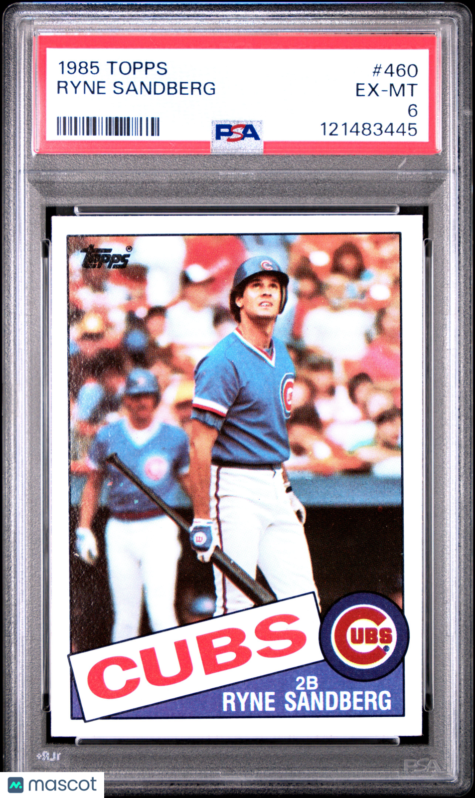 Thank you for your interest in purchasing the 1985 Topps Ryne Sandberg #460 PSA 6. Please note that the exact item shown in the photographs will be the one you receive. We appreciate you considering Windy City Sports Cards to help you expand your collection. As fellow collectors ourselves, we understand the passion for sports cards. Listed With Mascot.
