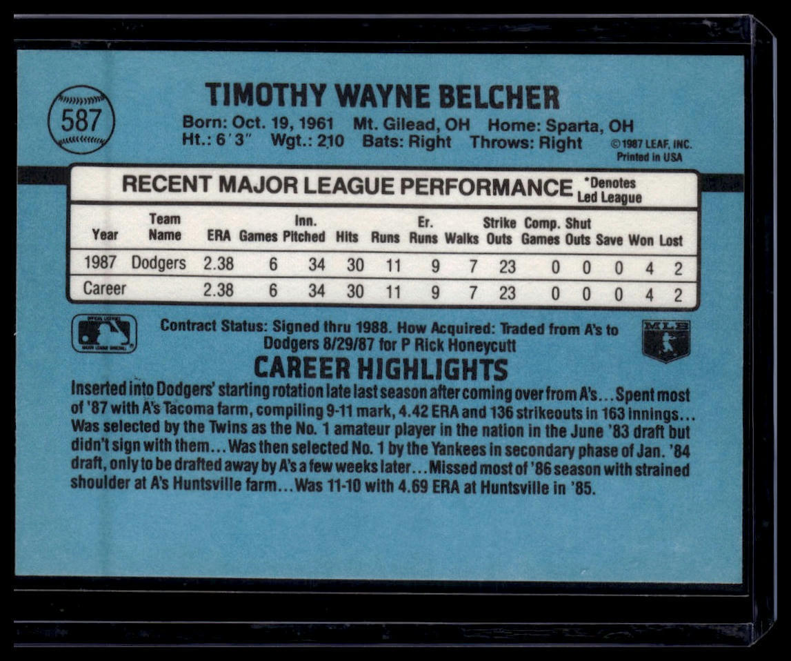 This is a nice example of a 1988 Donruss #587b Tim Belcher Other important information about this card: In 1988 Tim Belcher played for the Los Angeles Dodgers. Please check out our other listings for more great cards. Listed With Mascot.