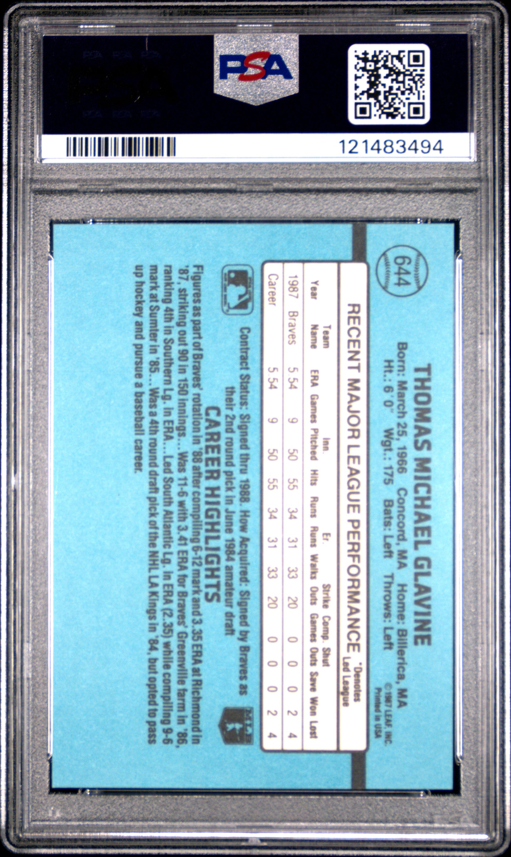 Thank you for your interest in purchasing the 1988 Donruss Tom Glavine #644 PSA 4. Please note that the exact item shown in the photographs will be the one you receive. We appreciate you considering Windy City Sports Cards to help you expand your collection. As fellow collectors ourselves, we understand the passion for sports cards. Listed With Mascot.