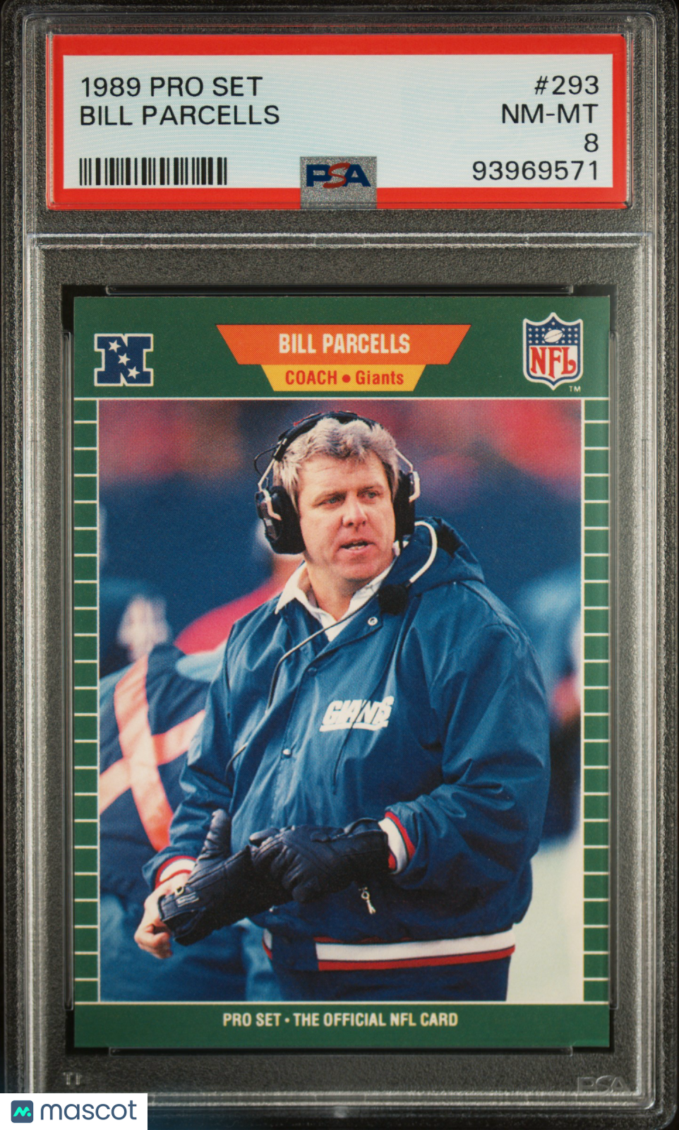 Thank you for your interest in purchasing the 1989 Pro Set Bill Parcells #293 PSA 8. Please note that the exact item shown in the photographs will be the one you receive. We appreciate you considering Windy City Sports Cards to help you expand your collection. As fellow collectors ourselves, we understand the passion for sports cards. Listed With Mascot.